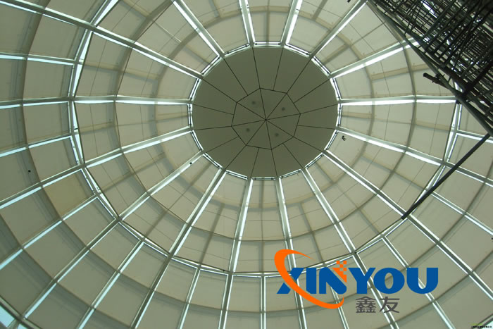 電動(dòng)遮陽(yáng)百葉FTS電動(dòng)天棚簾特別適用于普通電動(dòng)卷簾無(wú)法安裝的彎曲、傾斜的場(chǎng)合,整個(gè)系統(tǒng)由驅(qū)動(dòng)系統(tǒng)、面料和控制系統(tǒng)三部分組成,驅(qū)動(dòng)系統(tǒng)采用2個(gè)FTS專用管狀電機(jī),分別安裝在兩條卷管中,面料一端固定在其中一條卷管上,固定面料另一端的鋼絲繩卷曲在另一條卷管的卷繩器上。這兩臺(tái)電機(jī)通過(guò)一個(gè)專用的控制器協(xié)調(diào)工作,其中一臺(tái)電機(jī)提供面料運(yùn)行的動(dòng)力,另一臺(tái)電機(jī)的剎車同時(shí)工作,提供一定的阻力拖住面料,避免面料下墜,天棚完全打開(kāi)后,面料會(huì)卷在其中一條卷管上,運(yùn)行中或停止時(shí)面料均有張力,可制作大面積的平面或弧形面的天棚簾系統(tǒng)。