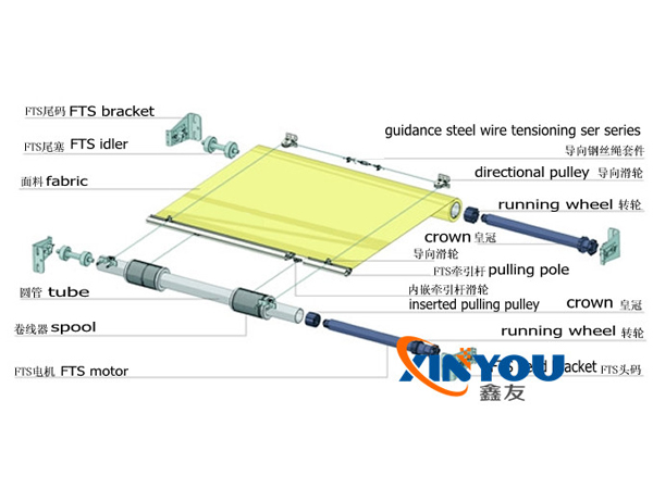 電動(dòng)遮陽(yáng)百葉FTS電動(dòng)天棚簾產(chǎn)品結(jié)構(gòu)示意圖