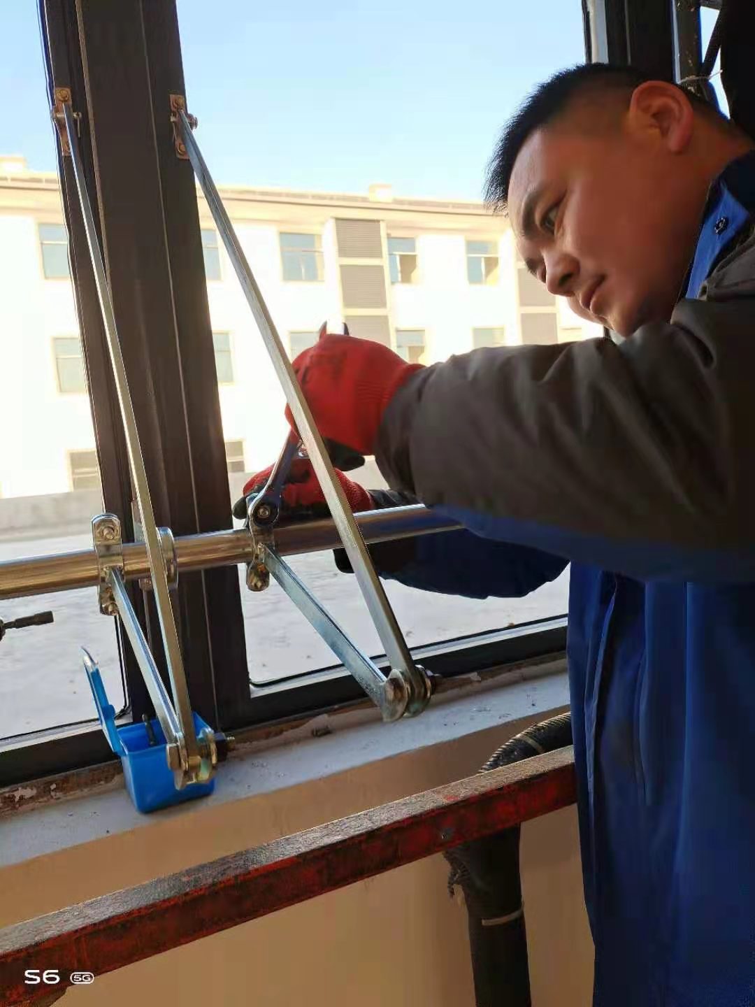 此次電動(dòng)排煙窗工程采用曲臂聯(lián)動(dòng)電動(dòng)開(kāi)窗器,由螺桿式電動(dòng)開(kāi)窗器驅(qū)動(dòng)。