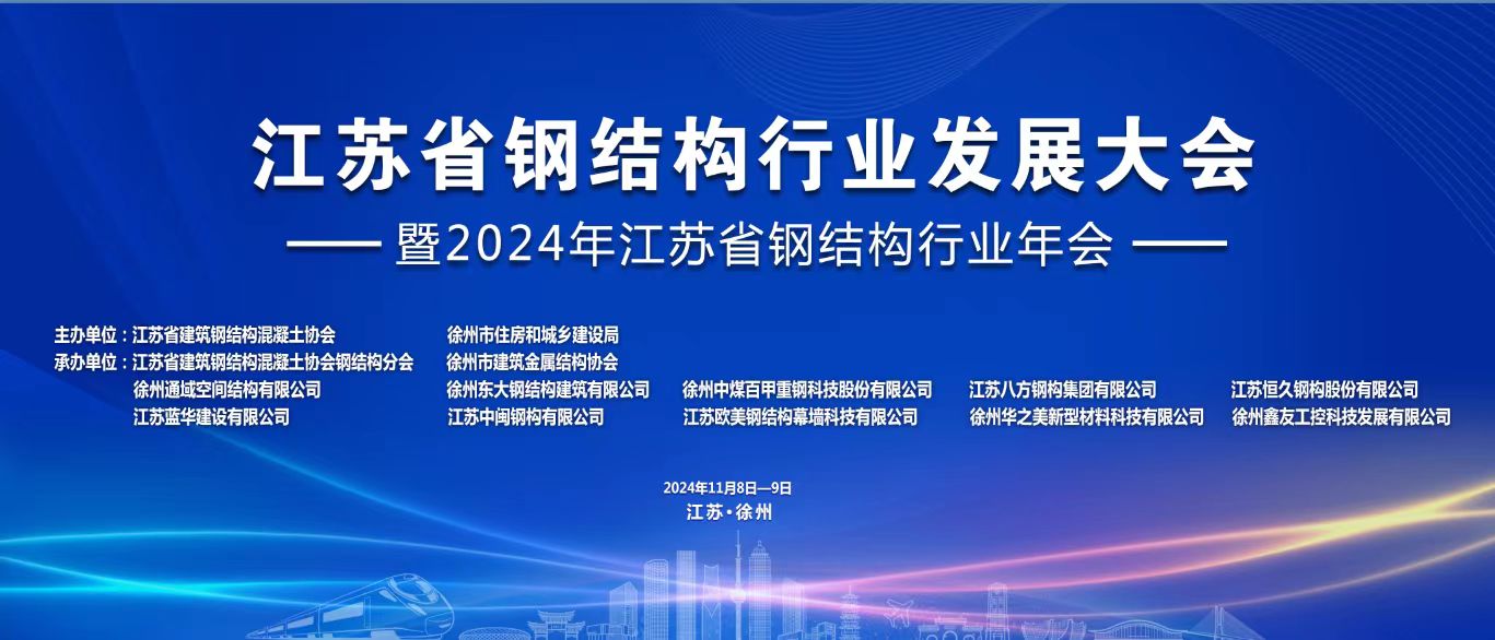 根據(jù)江蘇省建筑鋼結構混凝土協(xié)會章程和年度工作安排,由江蘇省建筑鋼結構混凝土協(xié)會、徐州市住房和城鄉(xiāng)建設局聯(lián)合主辦,我公司及江蘇省建筑鋼結構混凝土協(xié)會鋼結構分會、徐州市建筑金屬結構協(xié)會、徐州通域空間結構有限公司、江蘇藍華建設有限公司、徐州東大鋼結構建筑有限公司、江蘇中閩鋼構有限公司、徐州中煤百甲重鋼科技股份有限公司、江蘇八方鋼構集團有限公司、江蘇恒久鋼構股份有限公司、江蘇歐美鋼結構幕墻科技有限公司、徐州華之美新型材料科技有限公司聯(lián)合承辦的“江蘇省鋼結構行業(yè)發(fā)展大會暨2024年江蘇省鋼結構行業(yè)年會”定于2024年11月9日在徐州開元名都大酒店召開。