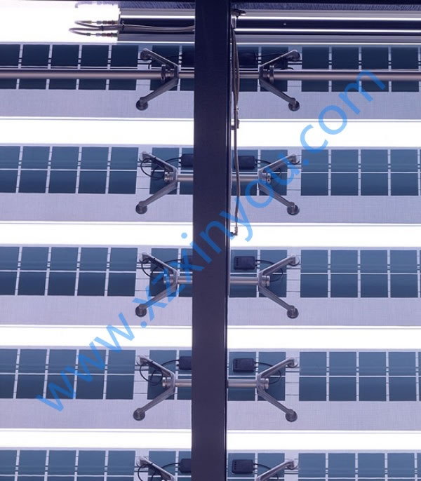 光伏百葉,能夠有效的將太陽能轉化為電能、動能,同時百葉滿足日常的采光、遮陽這樣功能。光伏百葉環境控制單元可以預置對風、雨、光、溫、煙等感應參數,使之通過外置感應器,對超限值作出及時回應進而控制百葉動作,完全實現了綠色環保節能的建筑理念。