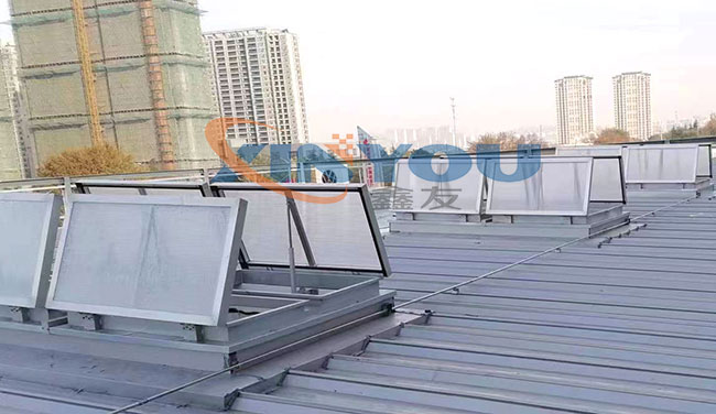 鑫友工業(yè)類電動(dòng)消防排煙天窗主要適用于廠房等工業(yè)類大型建筑的屋頂采光、通風(fēng)、排煙,設(shè)計(jì)依據(jù)建筑標(biāo)準(zhǔn)設(shè)計(jì)圖集09J621-2。